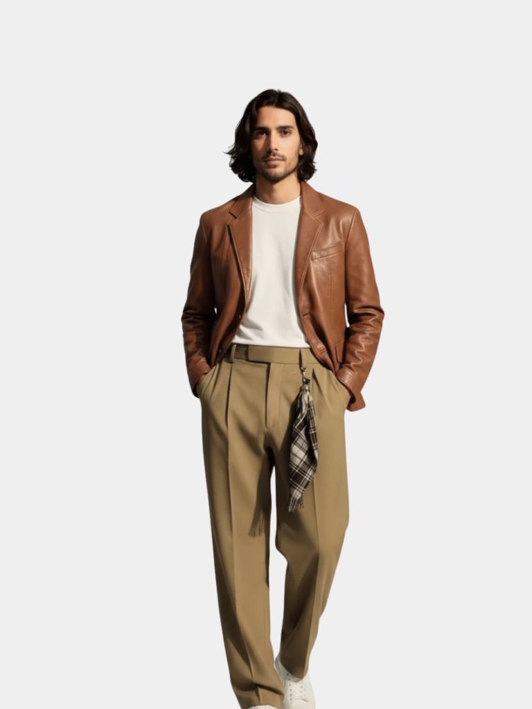 Realizzata in morbida pelle italiana, questa giacca incarna l'eleganza moderna con un tocco di tradizione. Taglio sartoriale impeccabile, linee pulite e una palette di colori raffinati che si adattano a ogni occasione.